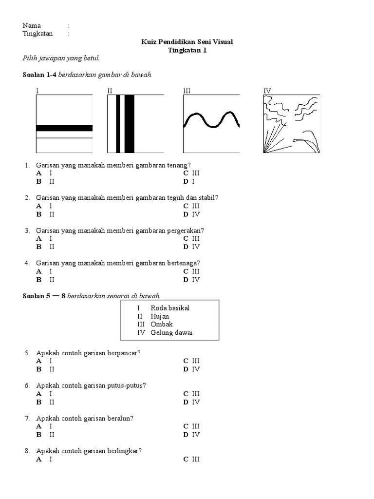 40 soalan untuk pelajar tingkatan 2 bagi bab kedudukan strategik mendorong penguasaan british. Add to my workbooks 0 Seni lukisan ting 2 kuiz. Perkongsian bahan pembelajaran Cikgu Lida Hasim ini boleh dimanfaatkan oleh murid-murid tingkatan 1 2 dan 3 sebagai ulangkaji.